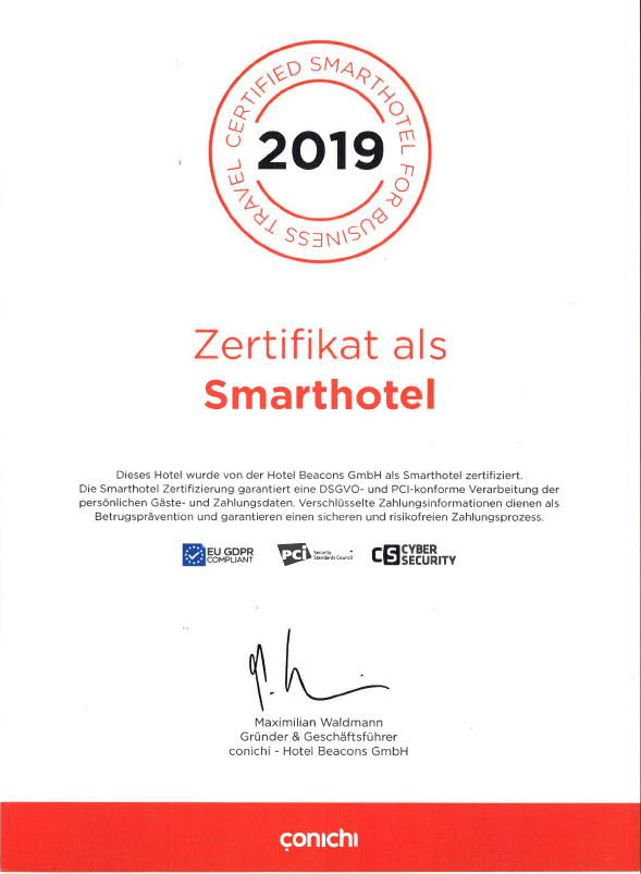 Dieses Hotel wurde von der Hotel Beacons GmbH als Smarthotel zertifiziert.
