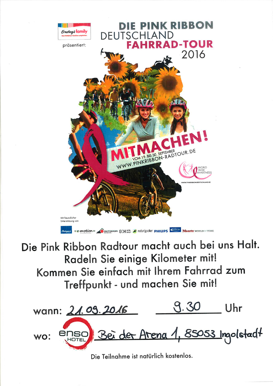 Die PINK RIBBON Fahrrad Tour 2016 macht Halt am enso Hotel.