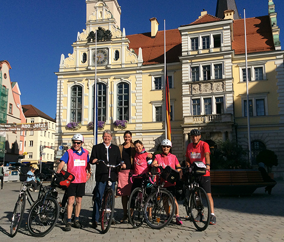 Bevölkerung Team 2 hat am Donnerstagmorgen seine zweiwöchige Tour in Richtung Kassel am enso Hotel in Ingolstadt fortgesetzt. Herr Dr. Rupert Ebner, Referent für Gesundheit, Klimaschutz und Umwelt der Stadt Ingolstadt hat das Pink Ribbon Radteam mit seinem eigenen Fahrrad abgeholt und ist einen Teil der Strecke mitgeradelt. „Wir haben uns besonders über den Besuch und vor allem über die sportliche Begleitung von Herrn Dr. Ebner gefreut“, so Reinhard