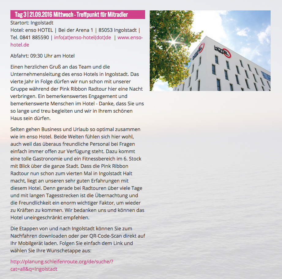 PINK RIBBON Radtour, Ingolstadt, enso Hotel